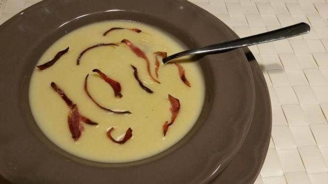 Con patatas, crema de leche, espárragos y otros ingredientes hacemos una crema fácil y rápida, con un aporte de hidratos extra que nos da las patatas. Esta receta la puedes ver paso a paso en La taza de Loza haciendo clic en el título de la receta