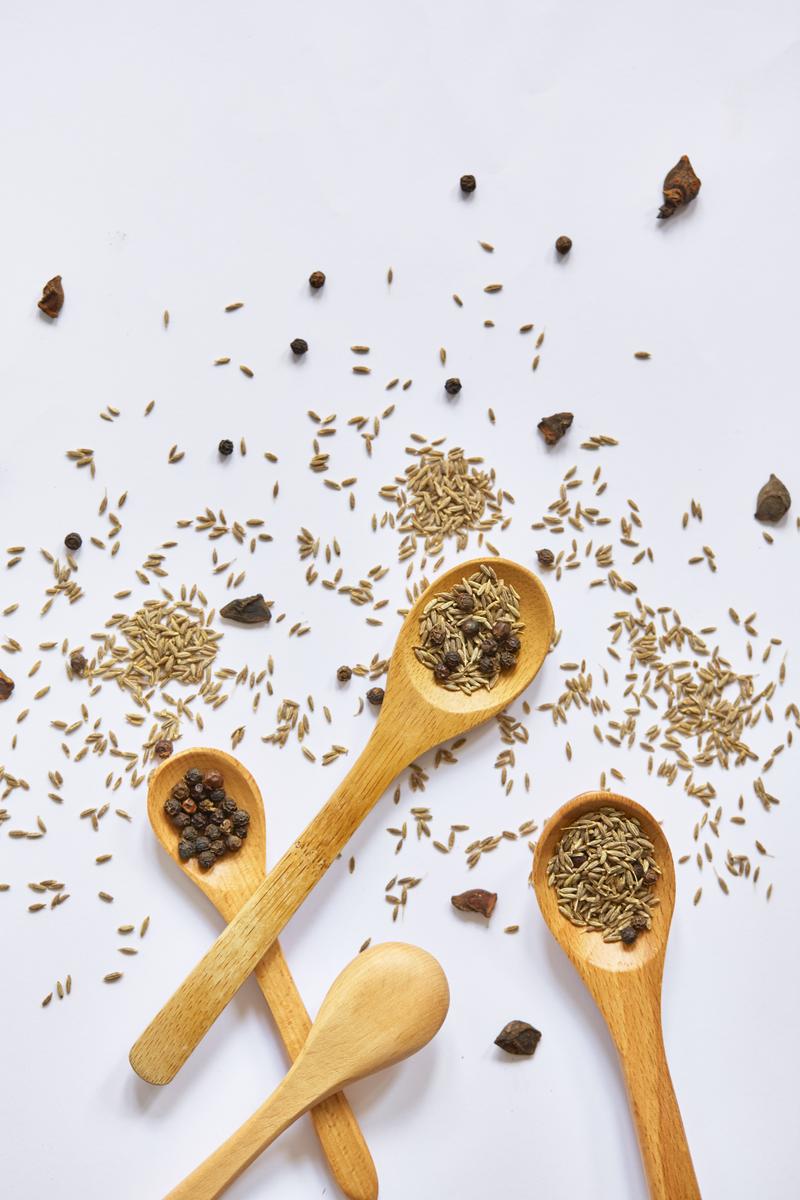 Condimenta los alimentos con hierbas y especias siempre que pueda. Te ayudará a reducir los condimentos con alto contenido de grasas saturadas a la vez que maximizas el sabor. Las especias y las hierbas también contienen antioxidantes, que pueden ayudar a mejorar los niveles de colesterol cuando se combinan con verduras. Nos encantan: albahaca, cilantro, romero, salvia, jengibre, ajo, estragón, chile negro y rojo, menta y orégano.