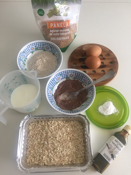 - 150g de harina de avena (en mi caso copos de avena molidos, ya sabéis)