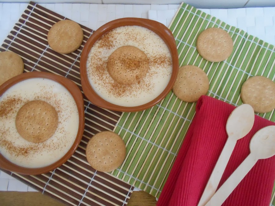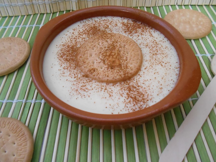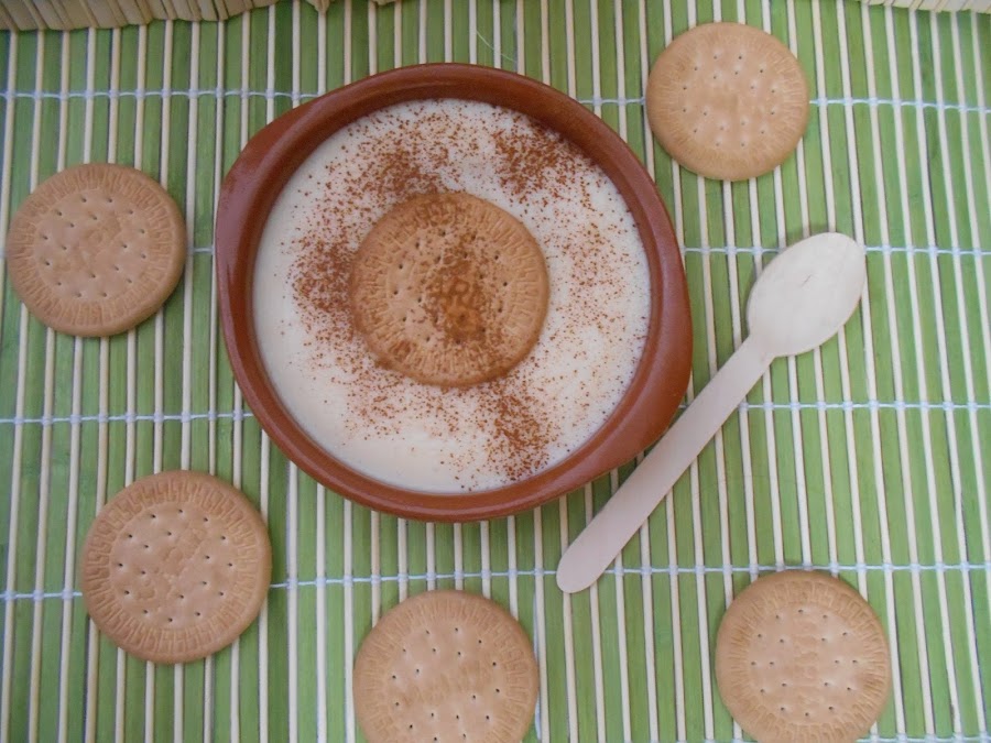 Disponemos en cuencos o copas y añadimos unas galletas María. A mi me gusta poner en capas