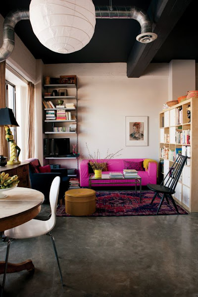 Ejemplo de un salón con el Elemento Fuego en el sofá, alfombra, sillón