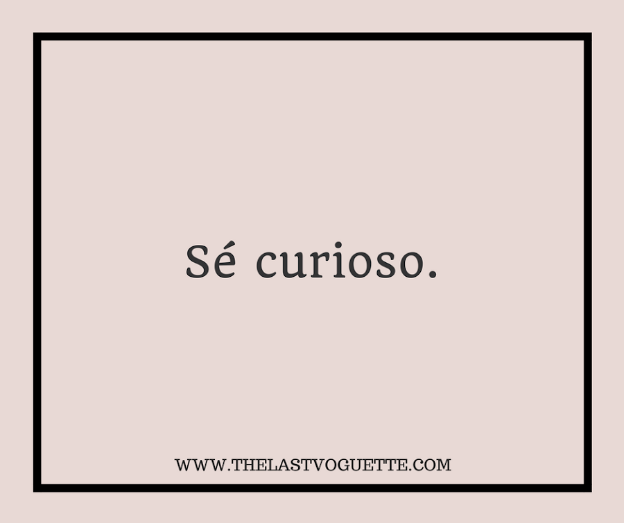 No le temas a los cambios y cambia. Cambia tú y cambia lo que te rodea. Sé curioso, no cotilla. No ignores tu necesidad de saber más, de asombrarte o de cambiar, por pequeña que sea, la pieza que sabes que no está encajando. No te excuses con tu edad. Sé curioso siempre, por encima de tus miedos.