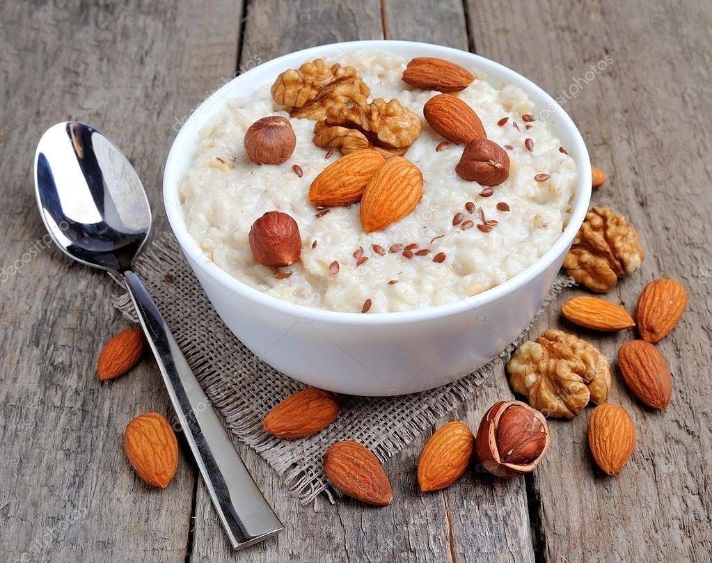 En un plato mezcla todos los ingredientes. Le darás a tu cuerpo una gran dosis de fibra, proteínas e hidratos de carbono. También puedes cocinar la avena con la leche y luego en el plato agregas los frutos secos que más te gusten.