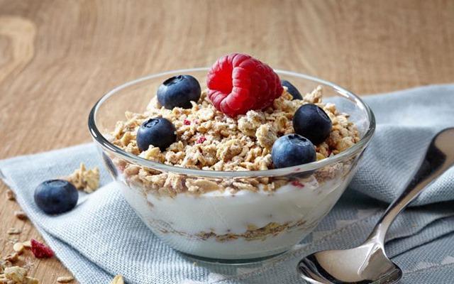 A tu yogurt desnatado, si es griego mejor. Le añades una cucharada de avena en hojuelas, una taza de tu fruta preferida y mezclas. La fruta la puedes cambiar día a día para evitar aburrirte.