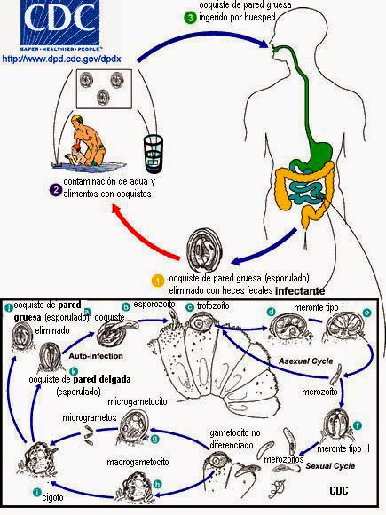 Se ha observado la presencia de dos tipos de ooquistes, 20% con pared delgada, causantes de la sintomatología, y 80% con pared gruesa, que serán excretados con las heces.