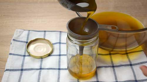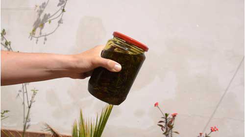 7. Cuando hayan pasados los 40 días de maceración lo colamos, escurrimos bien y pasamos el aceite de romero limpio a un bote de cristal para su conservación.
