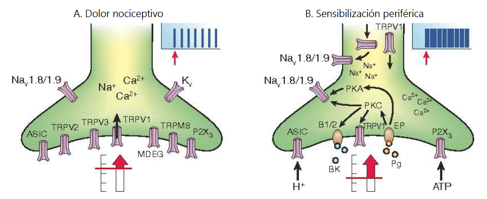 El dolor se origina por la liberación de sustancias musculares en el espacio donde se encuentran los nociceptores. Esto nos ayuda a comprender que el DOMS (Dolor Muscular de Aparición Tardía) probablemente no ocurre únicamente debido a lo que sucede dentro del músculo, es decir, en el aparato contráctil. [7].