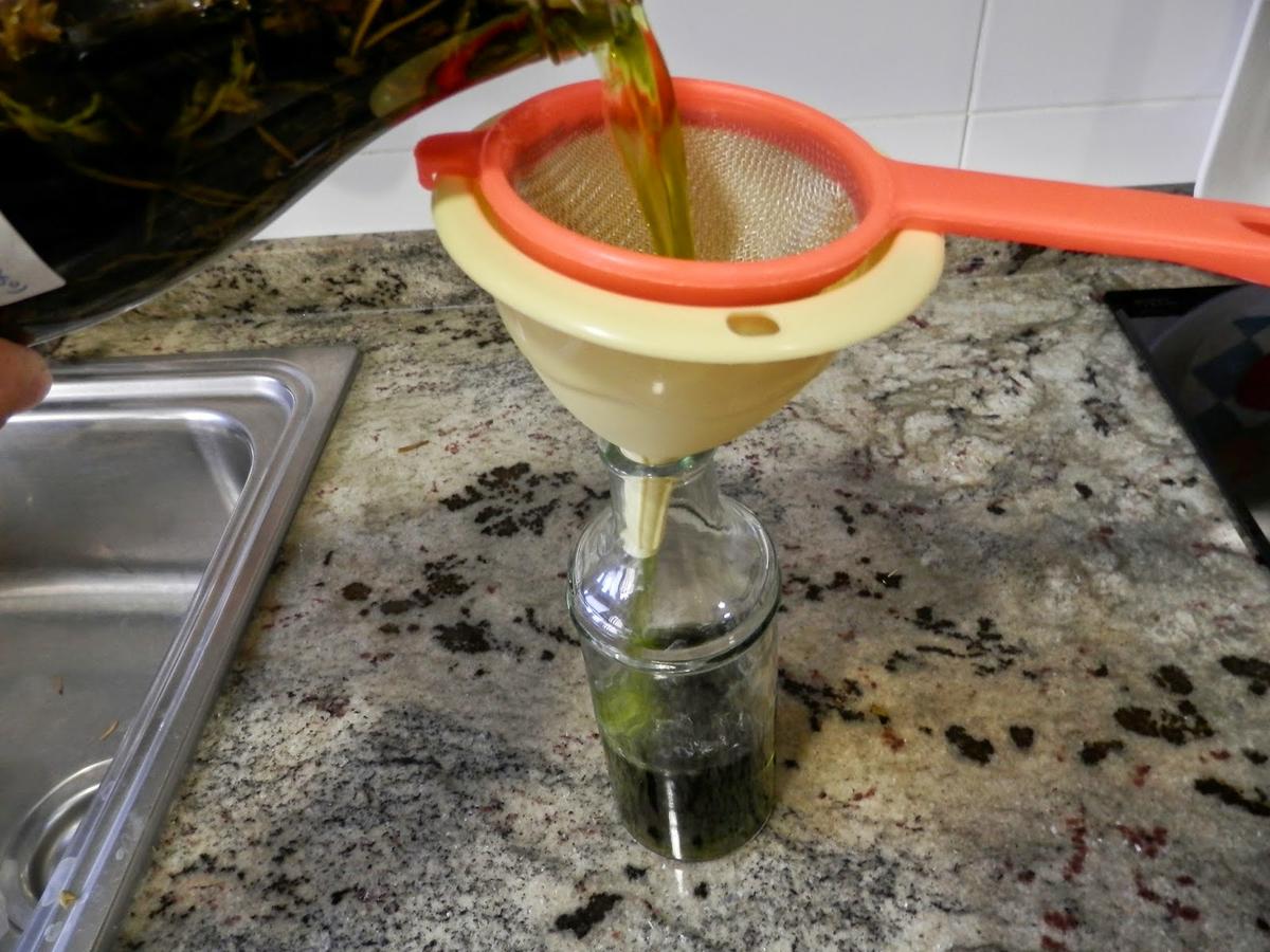 Cuando hayan pasado los cuarenta días, colamos el alcohol y lo metemos en una botella opaca para que no le de la luz y conserve sus propiedades por más tiempo.