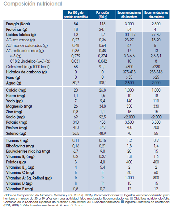 A esto se une su elevado contenido en proteínas de alto valor biológico, así como en vitaminas y minerales. Por ello, se considera un alimento muy nutritivo que, si se cocina de manera sencilla, puede formar parte habitual de las dietas hipocalóricas.