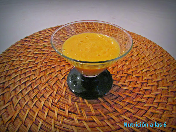 Troceamos la fruta y la ponemos en un recipiente al que añadimos el resto de ingredientes (el agua se puede añadir utilizando 2 medidas del envase del yogur) y los batimos hasta que quede una mezcla uniforme.