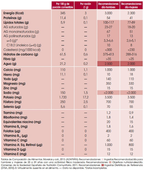 Control fitosanitario: para detectar residuos de plaguicidas, insecticidas y fungicidas.Debido a que la ración de consumo es muy baja, 1 gramo como mucho, no se puede decir que el azafrán tenga un aporte de nutrientes significativo. Aun así, los beneficios para la salud son importantes. Entre ellas destaca su carácter tónico, estimulante del apetito; eupéptico, favorece la digestión; sedante, combate la tos y la bronquitis, mitiga los cólicos y el insomnio, calma los problemas de dentición infantil, etc.; carminativo, emenagogo y combate el asma.