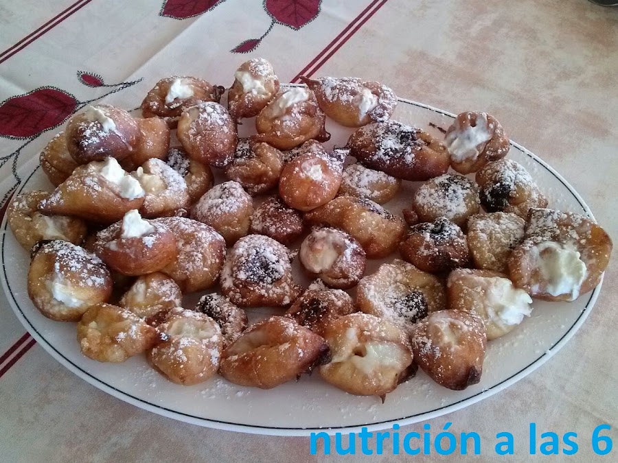 Pasadas las 2 horas, ponemos a calentar una sartén honda con abundante aceite. Cuando esté caliente (pero no demasiado), con la ayuda de dos cucharitas de las de café cogemos una porción de la masa y la echamos en el aceite. La masa al principio se quedará en el fondo, pero en seguida se inflará y subirá a la superficie del aceite. Cuando estén doraditos, con la ayuda de una espátula, los sacamos a un papel absorbente y dejamos que se enfríen.