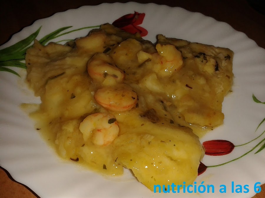 Por último, echamos las gambas y el chorrito de vino blanco, dejamos cocer unos 5 minutos y ya tenemos el plato listo para servir.