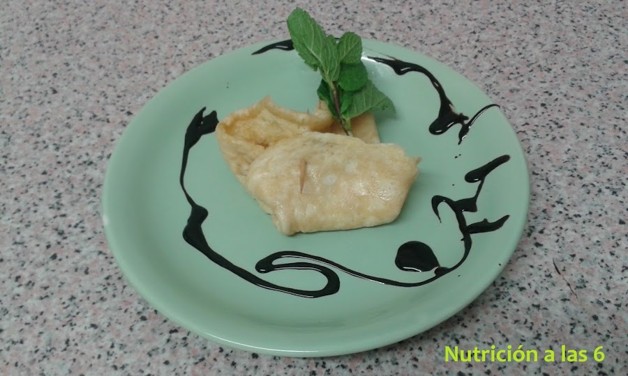 Ya tendríamos nuestros saquitos listos para comer, acompañados de una ensalada. Si queréis una presentación mejor, otra opción es atar los extremos con un poco de cebollino.