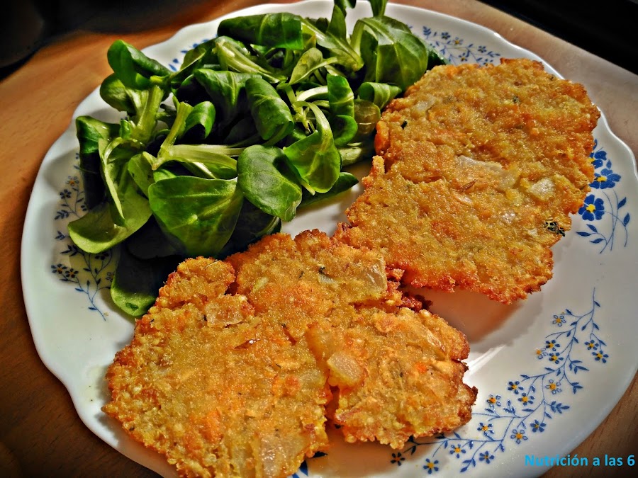 Por último, damos forma de hamburguesa a la masa y volvemos a pasar por pan rallado. Ponemos en una sartén un poco de aceite y freímos vuelta y vuelta nuestras hamburguesas.