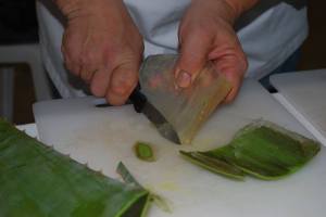 Aunque muchos no lo usan para cocinar los nuevos chefs macrobióticos están preparando platos con el Aloe Vera. Algunos le quitan el sabor amargo con agua, hielo y sal. Primero introducen el Aloe Vera y lo dejan durante doce horas en remojo, de esa forma quitan el amargor y no se destruyen sus propiedades, al estar en frio.