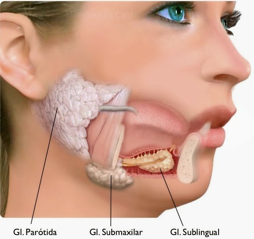 La secreción salival se produce en la boca por la acción de tres grandes pares de glándulas (parótidas, submaxilares y sublinguales) y otras muchas glándulas unicelulares pequeñas. Entre todas ellas producen diariamente entre 800 y 1550 ml de saliva, podemos decir que de media se crea al día 1 litro de saliva, que es segregada durante la masticación.
