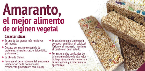 La granola, mezcla de frutas deshidratadas, semillas y miel es un excelente desayuno en un bowl de leche. La semilla de Amaranto proporciona grandes beneficios al organismo, es considerado uno de los granos más nutritivos de origen vegetal, alto contenido de ácido fólico, vitamina C, calcio, minerales y proteínas, libre de gluten.
