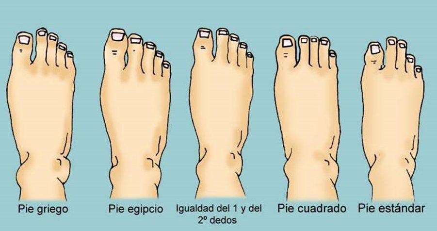 Pie estándar: similar al anterior con la diferencia de que el tercer dedo es mayor que el primero (2>3>1>4>>5). Representa el 9,2 % de la población estudiada.