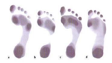 Pie normal: en estos casos, el pie cuyo apoyo no recae sobre toda la superficie plantar. Existe un arco interno que eleva la parte medial del pie, conocido como puente o empeine.