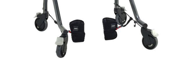 El andador MyWay dispone entre sus accesorios opcionales la posibilidad de añadir unas guías de tobillos flexibles para evitar la marcha en tijera y que se pueden colocar justo a la altura del tobillo o un poco más arriba a la altura de la pantorrilla según necesite hacerse el control.