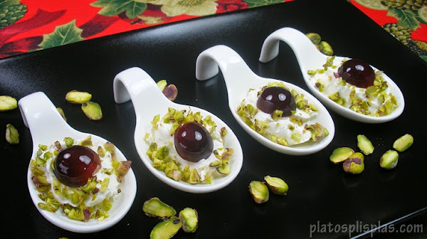 Por último, desde Platos plis plas traigo estas Cucharitas de queso con uva. Un bocado delicioso y diferente. Si quieres sorprender a tus invitados, esta es otra opción. Pásate por su blog para los ingredientes y preparación.