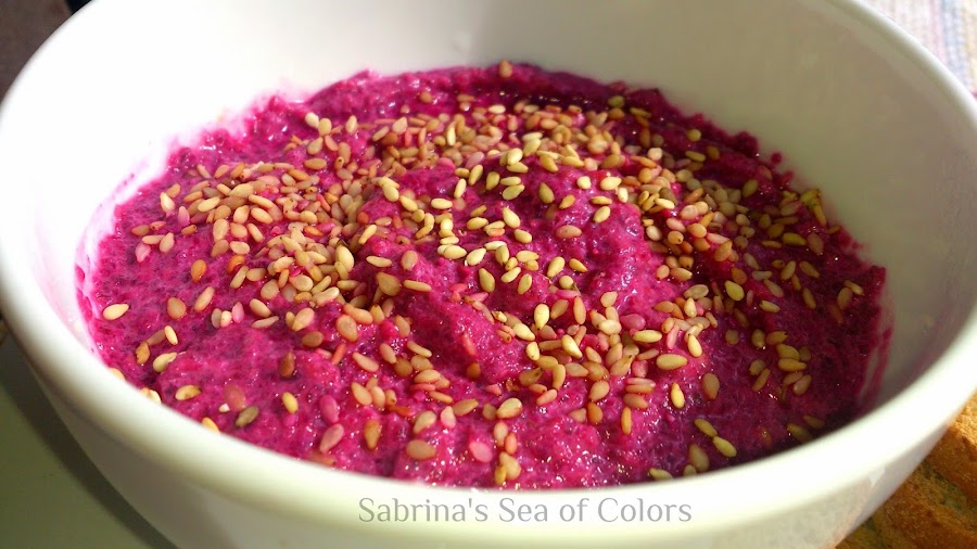 En mi blog, Sabrina"s Sea of Colors, encontrarás muchos aperitivos, pero aquí destaco uno muy saludable. Se trata de este Dip de remolacha y sésamo. Incluso si no eres muy de remolacha te gustará, mira que fácil es. Además, quedará muy vistoso en tu mesa.