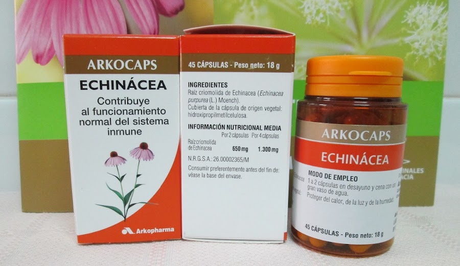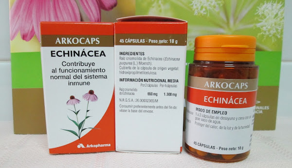 Para este mes, "Arkopharma", nos presenta sus "ArkoCápsulas de Echinácea", que para las que no lo sepáis, se trata de un complemento alimenticio que ayuda a fortalecer el sistema inmunológico, es decir, se trata de una manera natural de evitar los resfriados. De ellas decir, que no es un tratamiento para la gripe y/o el resfriado, pero que sí que alivia mucho los síntomas y refuerza la prevención.