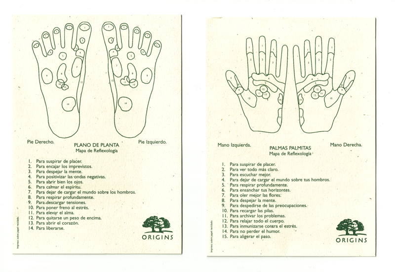 correspondientes zonas de reflexología. Son de Origins, la marca