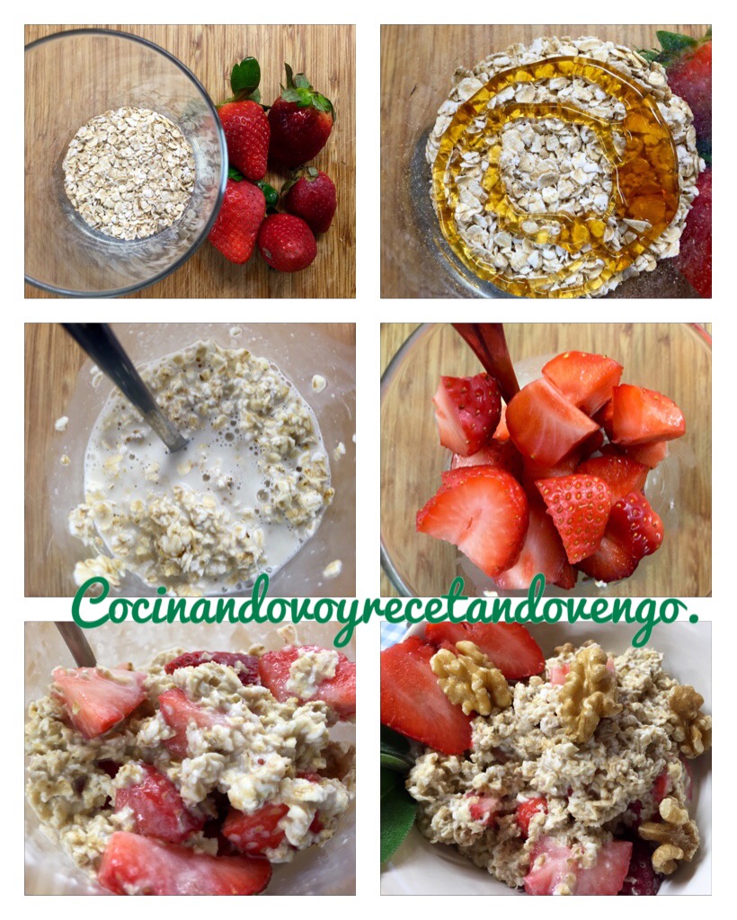 Nota: En verano, suelo dejar los copos de avena bien cubiertos de agua del tiempo en un vaso o bol, cubierto con papel film, toda la noche en la nevera y lo tendremos listo para el desayuno de la mañana, simplemente incorporar la fruta o frutos secos y a disfrutar.