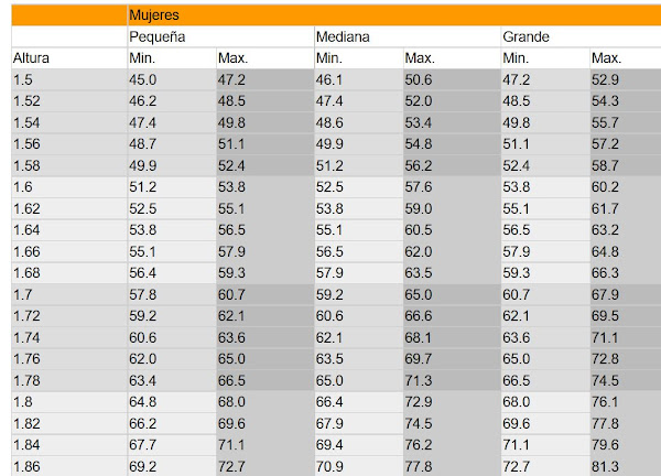 PESO IDEAL FEMENINO
