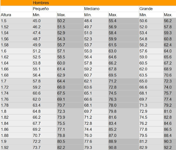 TABLA DE PESO MASCULINO Y FEMENINO