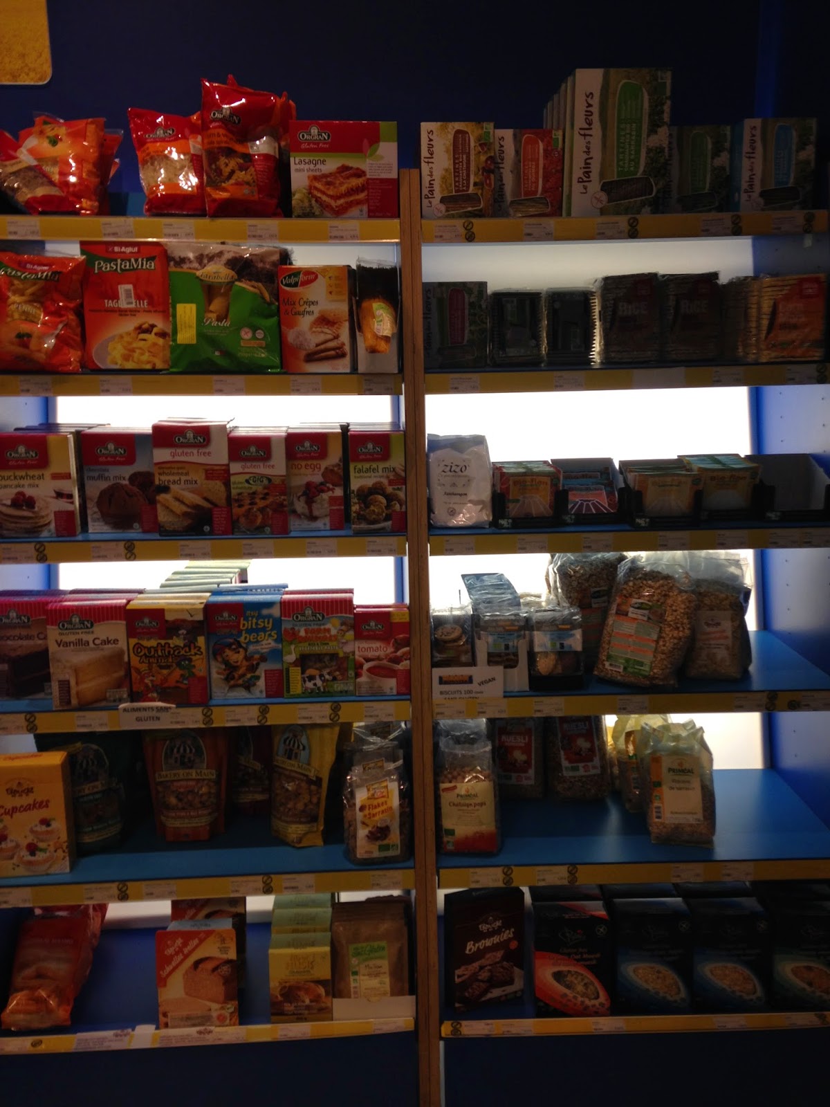 Como suele pasar, el día que me venia a España con las maletas ya cerradas y sin hueco para un alfiler me encontré con una tienda gigante donde tenían toda una pared llenita de productos sin gluten. La tienda se llamaba Dame Nature y se encontraba dentro del centro comercial City 2 (Rue Neuve 123, 1000 Bruxelles)