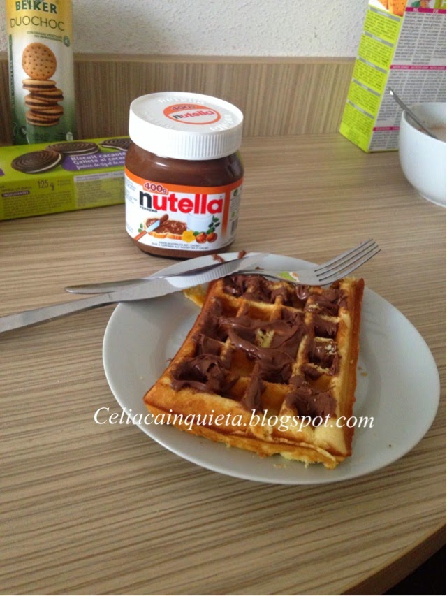 La verdad es que para matar el antojo me vino bien, pero no sabia a gofre, como os he comentado en otras ocasiones, yo tengo los sabores "glutosos" muy recientes y este gofre no sabia a gofre, no estaba malo pero sabia a magdalena. Eso si, con Nutella (también comprada en Carrefour Bruselas) estaba rico.