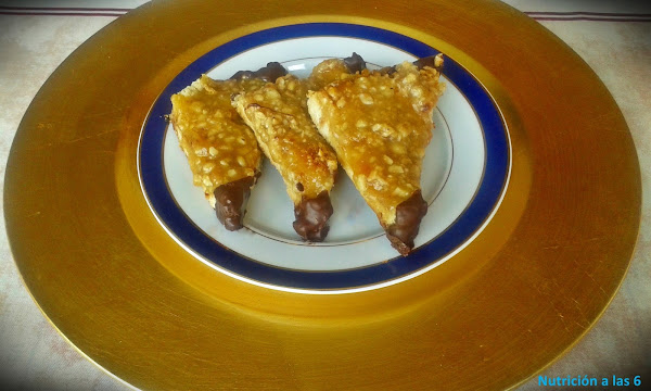 Por último, cuando ya se haya enfriado, fundimos el chocolate al baño maría y untamos las esquinas de nuestros triángulos. Dejamos enfriar y ya tendríamos listos nuestros dulces.