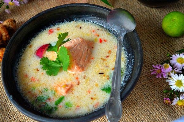 En el blog Patty´s Cake podemos encontrar una deliciosa sopa con salmón de toques orientales. Se entremezcla el jengibre y con la leche de coco y otras especias e ingredientes que se conjugan a la perfección para crear un plato que tientan en su elaboración. Vamos es de esos que si o si tenemos que probarlo y puedes ver al detalle su elaboración a continuación: