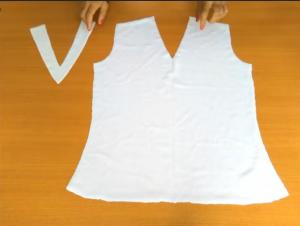 Procedemos a separar el cuello de la blusa precisamente en la costura del hombro que hemos realizado anteriormente en la pieza.