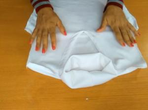 De igual manera, por la parte delantera de la blusa, seguimos elaborando el doblez ya antes mencionado de aproximadamente 1 cm en ambos extremos. Cabe destacar que este doblez lo realizaremos con mucho cuidado.