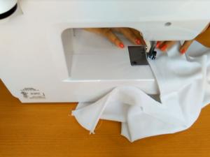 De igual manera, realizamos una costura recta (pespunte lineal o sencilla) de modo que ésta se encuentre a 2 cm aproximadamente del borde.