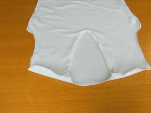 Por otra parte, realizamos un pespunte lineal o sencillo (costura recta) por el cuello, aplicando un poco de estiramiento a la misma de aproximadamente unos 2 milímetros del borde de la blusa.