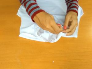 Lo siguiente que vamos a hacer es unir las mangas a la blusa fijándola con alfileres o pinzas para tela. Este procedimiento lo haremos por todo el borde.
