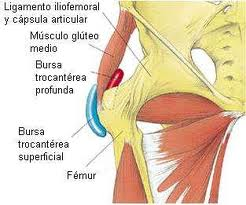 La bursitis de cadera es una inflamación de la bolsa que recubre el trocánter mayor, entre el glúteo y la ingle. La bolsa está llena de líquido y actúa como amortiguador de presiones en la región de la cadera.