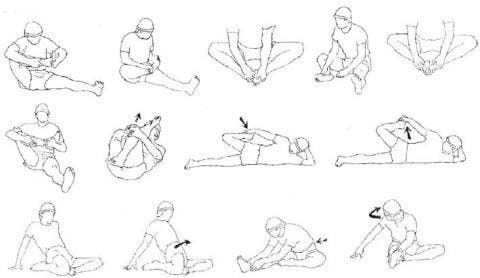 Los músculos de las piernas comienzan a calentar con estiramientos. Podemos: