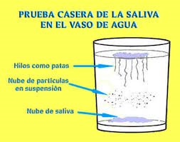 Existe además otra prueba casera para saber si se padece candidiasis. Consiste en escupir en un vaso lleno de agua, en ayunas. Si en los siguientes minutos, ves cadenas de saliva que bajan, el agua se vuelve turbia o la saliva se hundió hasta el fondo, lo más probable es que tengas candidiasis.
