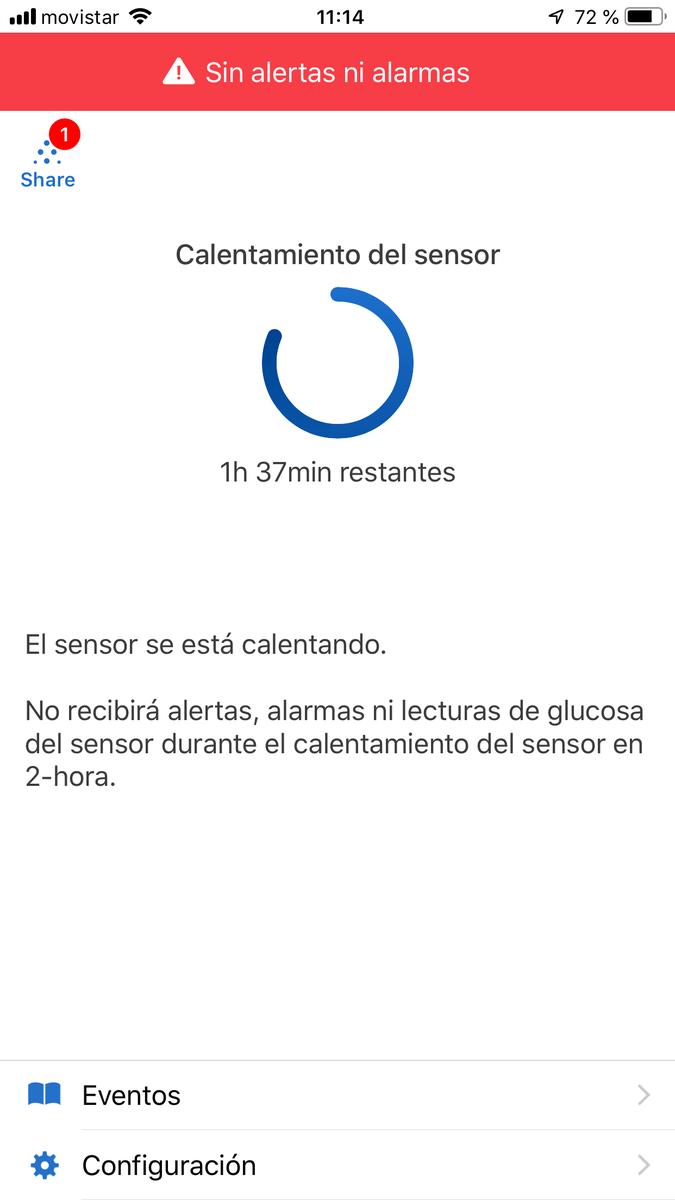 Una vez puesto, Dexcom G6 necesita dos horas para ponerse en marcha y a partir de ahí empezarás a ver las glucemias o en el receptor (si lo adquieres) o en la aplicación móvil.