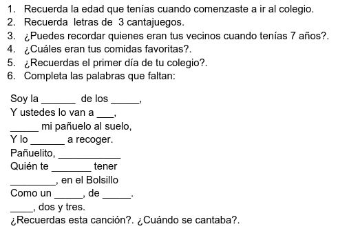 1. Recuerda la edad que tenías cuando comenzaste a ir al colegio.