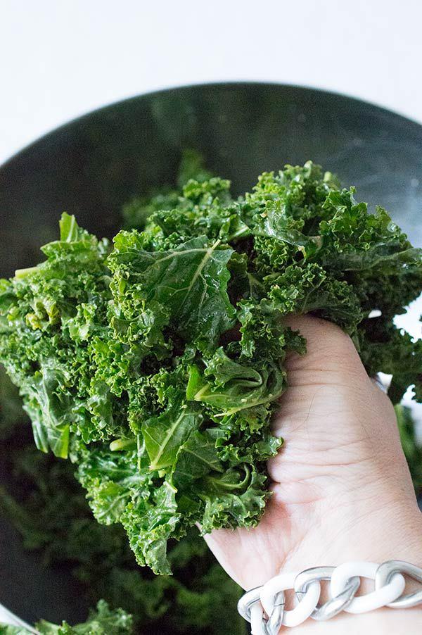 La col kale esta muy de moda, y la verdad es que no me extraña porque tiene muchas propiedades, formando parte de esos “superalimentos” que están tan de moda últimamente. El otro día al comprarla una mujer en la cola me pregunto que era eso, y como la preparaba, la verdad es que normalmente la hago salteada con un chorrito de aceite un poco de ajo y salsa de soja, pero esta vez quería probarla de otra manera y la verdad es que nos ha gustado mucho. Yo le he añadido zumo de limón, cayena molida y un poco de ajo en polvo y por supuesto un chorrito de aceite pero vosotros lo podéis hacer tan solo con el aceite, pero el toque picante para mi ha sido delicioso. También podéis añadir las especias que mas os gustan, como cúrcuma, comino o ras el hanut! Lo que vosotros queráis!
