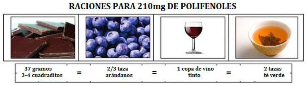 Figura 5. Raciones de 210 mg de polifenoles en alimentos.