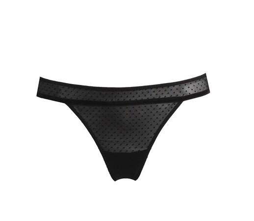 Este tanguita va a juego con el sujetador así que también me gusta mucho porque su diseño es igual. El negro es un color que me encanta en la ropa interior, y en este conjunto junto con los lunares hacen una fórmula perfecta.