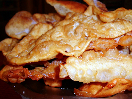 Una vez que les hemos dado forma, vamos friendo las orejas en una sartén con aceite muy caliente, preferiblemente de girasol. A continuación se retiran y se dejan escurrir sobre papel de cocina y se espolvorean con azúcar glas.